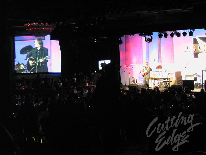 We have been doing awards shows for years with the same series of clients. For this awards show, we provided Video, Lighting and scenic elements. For Video, we provided a multi-camera switching system which was capable of recording and playing back a variety of video formats and graphics packages. The video screens are 10.5' x 14' (front projected) with 10,000-LUMEN LCD video projectors, as well as 50" plasma screens. To light the scenic elements, we provided both conventional static lighting, as well as programmable moving lighting, which added textures and color to the scenic set. We also utilized LED lights for effects and color.